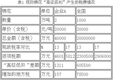 舉例:以一家年用棉量為2萬噸的棉紡企業(yè)A為例,1噸原棉按平均采購價(jià)2萬元(含稅)計(jì)算,全年棉花采購費(fèi)用總計(jì)約為4億元,按13%稅率計(jì)算進(jìn)項(xiàng)稅款為4601萬元,而如果按17%稅率計(jì)算進(jìn)項(xiàng)稅款為5812萬元,稅率差價(jià)達(dá)1211萬元,由于相應(yīng)的以流轉(zhuǎn)稅為計(jì)征依據(jù)的城建稅及附加等地方稅種要增加約157萬元,這對于屬于微利行業(yè)的企業(yè)來說,顯然是一筆不小的費(fèi)用,大大增加了企業(yè)的成本。